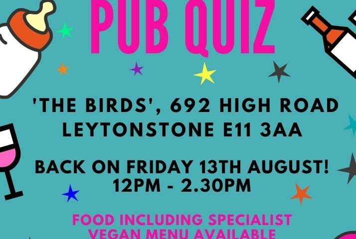 We’re taking over The Birds, a large family-friendly pub in the heart of Leytonstone, famous for its quirky events such as bottomless brunches. Baby change and high chairs are provided.