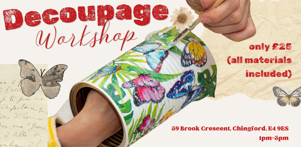 Join our workshop and turn a drab wooden box into an art piece that expresses who you are better than anything you could buy in a shop! In our decoupage workshop, you will learn the art form and discover a new way to express yourself that ends with a functional item you can display!