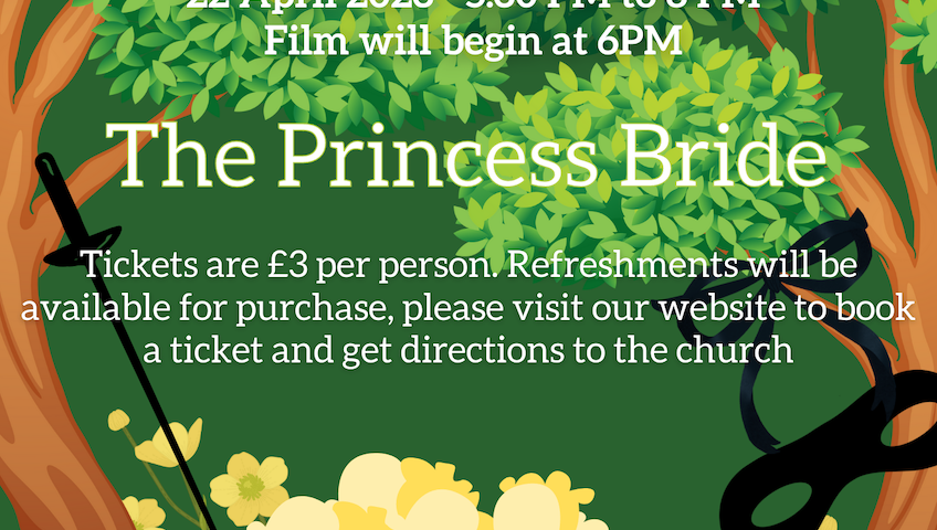 Saturday cinema- a £3 cinema experience at St Peter in the Forest church. This month we’ll be screening The Princess Bride. Tickets can be prebooked on our website. Popcorn, sweets, and cold drinks are available to purchase in the cafe.